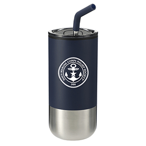 TUMBLER W/ STRAW - 16oz. Navy/Stainless Steel Item#NMCRS-121 Lagom Insulated 16oz Stainless Steel Tumbler with Straw Details: The Bullet Lagom 16oz Tumbler with Stainless Steel Straw features durable double-wall construction with built-in insulation to keep your beverages hot or cold in any environment. It comes with a food-grade stainless steel straw that has a comfortable removable silicone tip for safe sipping. The Lagom also includes a spill-proof press-on lid, which features a slide closure. Reusable and dishwasher-safe, the included straw is an eco-friendly, environmentally responsible, and sustainable alternative to disposable plastic straws.